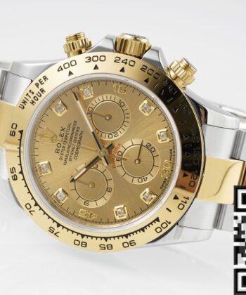 This model is powered by Rolex’s self-winding automatic chronograph movement, ensuring precise timekeeping and reliable performance. The watch is housed in the Oyster case, famous for its water resistance, making it suitable for everyday use and light water activities.