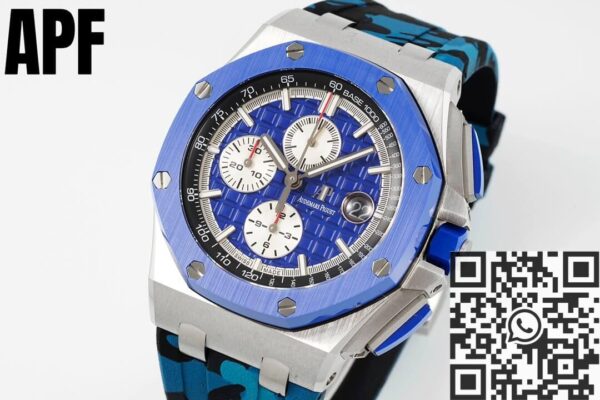 If you’re interested in the finest 1:1 replica from APF Factory, such as the Audemars Piguet Royal Oak Offshore 26400SO.OO.A335CA.01 Blue Panda Plate, feel free to contact us. We’re happy to provide you with more details and exceptional service. We look forward to assisting you!