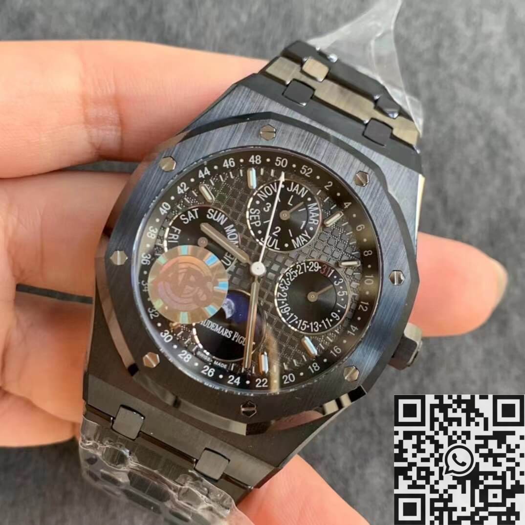The Audemars Piguet Royal Oak 26579CE.OO.1225CE.01 Black Ceramic by APS Factory is an exceptional timepiece that showcases the perfect blend of technical mastery and bold aesthetics. Crafted from full black ceramic, this 1:1 replica captures the elegance and innovation of the original design. Featuring a perpetual calendar function, sleek black ceramic bracelet, and detailed craftsmanship, this watch is an outstanding choice for collectors and enthusiasts alike.