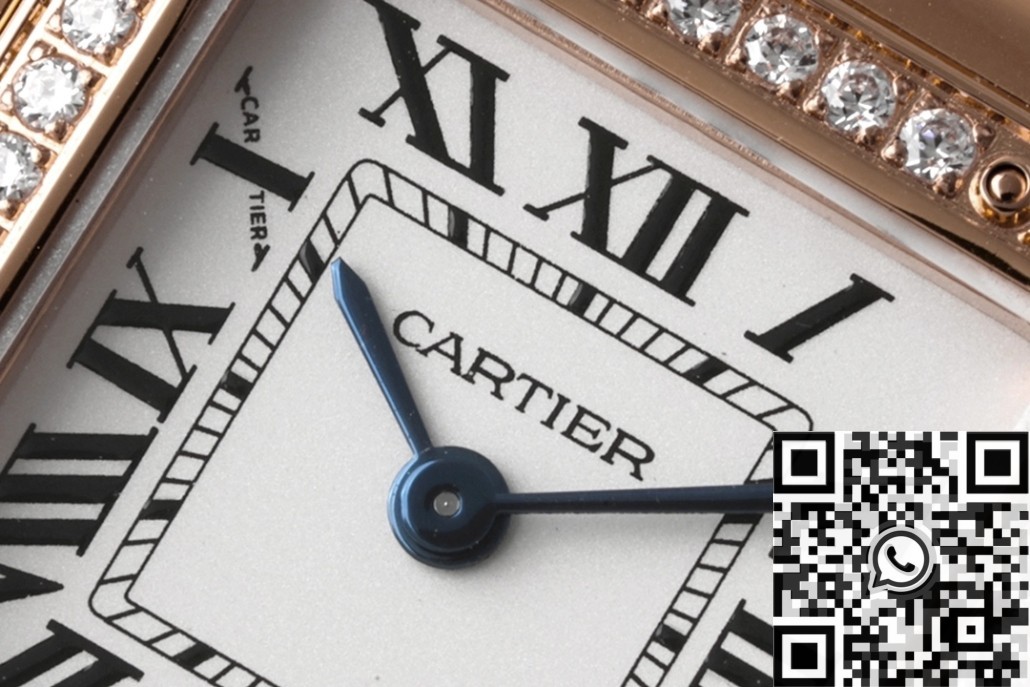The white dial of the Panthère WJPN0008 contrasts beautifully with the gold case, ensuring that the watch remains elegant yet readable. It features Roman numerals at the 12, 3, 6, and 9 positions, a hallmark of Cartier’s signature design. The blue steel hands provide a sharp contrast against the white background, allowing for easy time reading while adding a sophisticated touch.