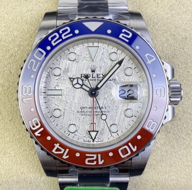 The Rolex GMT Master C+ Factory M126719BLRO-0002 Meteorite Dial Watch is a stunning timepiece that combines the legendary Rolex GMT Master II design with the unique allure of a meteorite dial. Manufactured by C+ Factory, this exceptional replica captures all the signature features of the original, from its striking meteorite dial to the iconic red and blue “Pepsi” bezel. Powered by the Rolex Caliber 3285 movement, it offers precise timekeeping and a sophisticated look that’s perfect for travelers and watch enthusiasts alike.