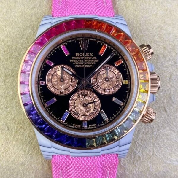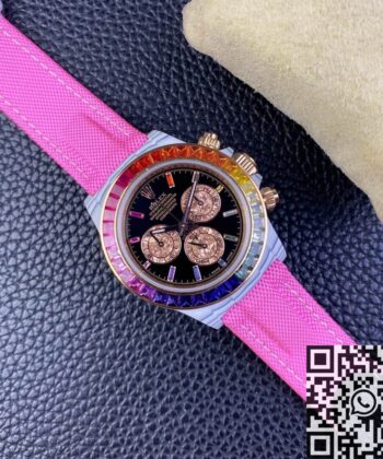 The IPK Custom Rainbow Rolex Daytona White Carbon Fiber Version 4130 Movement Watch is a stunning blend of modern design and exceptional craftsmanship. This high-quality custom timepiece features a unique white carbon fiber dial that provides a dynamic and sleek look, making it an impressive addition to any collection. Powered by the advanced 4130 automatic movement, this watch combines precision, style, and durability for those who demand the best.