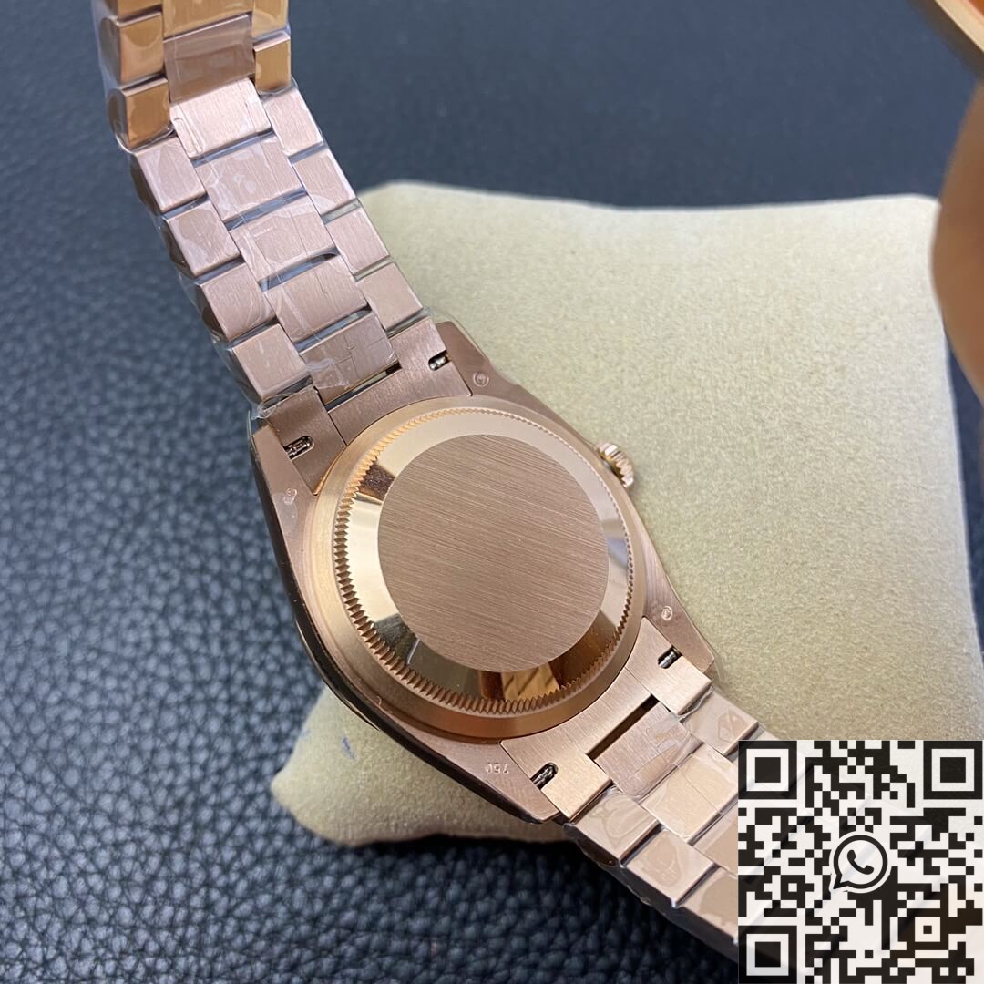 The 36mm case of this Rolex Day-Date is made from 18K Everose Gold, a proprietary rose gold alloy known for its unique blend of warmth and shine. This luxurious material ensures the watch remains durable while exuding elegance, making it the ideal choice for everyday wear or special occasions.