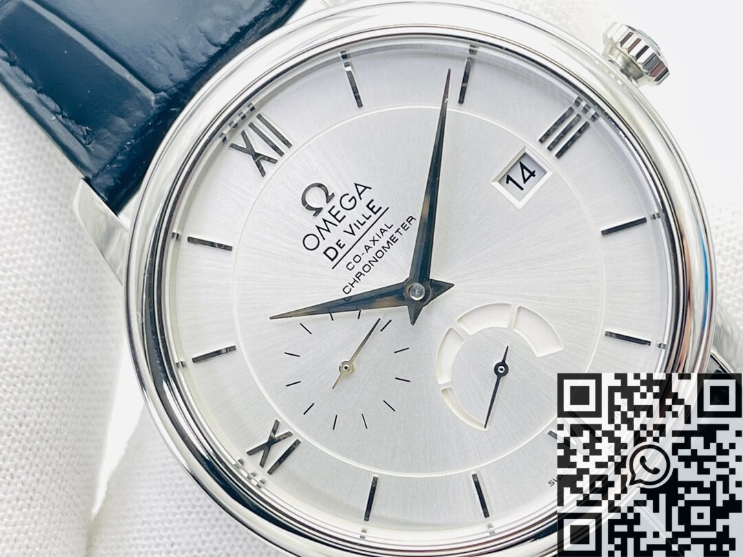 - Case: The 40mm stainless steel case is polished to a high sheen, giving it a sleek and sophisticated look. Its smooth, round design and refined finishing highlight the timeless elegance of the Omega De Ville series.