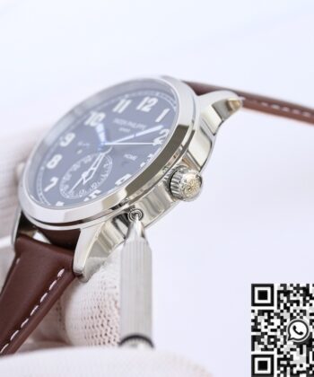 The Patek Philippe Complications 5524G-001 is a true testament to the brand’s dedication to combining classic designs with modern technical achievements. The blue dial, 18K white gold case, and brown leather strap create a harmonious blend of luxury and style. The watch’s practical complications, including the date, moonphase, and power reserve, are integrated seamlessly into the design, making it not only a visually stunning piece but also an incredibly functional one.
