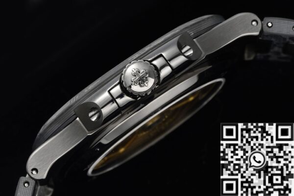 The watch features a lightweight yet durable carbon fiber case, making it both resilient and striking. The use of carbon fiber gives the Nautilus a contemporary look while maintaining the iconic design elements that have made it a watchmaking legend.