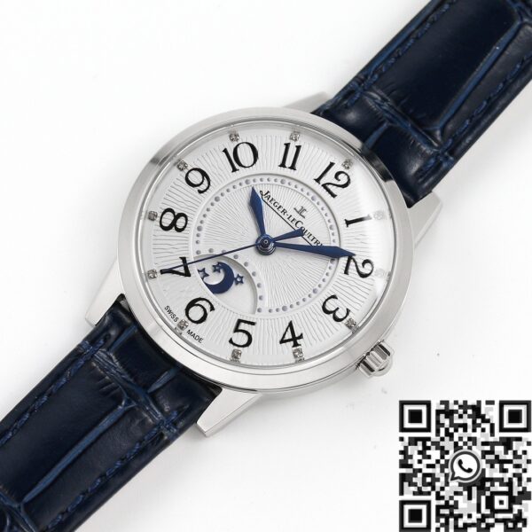 The Jaeger LeCoultre Rendez Vous 3448410 Blue Leather Strap 34mm Watch is a high-quality 1:1 replica from the GF Factory. Every detail, from the stainless steel case to the movement and the leather strap, has been meticulously replicated to mirror the original Jaeger LeCoultre timepiece. This ensures that you receive the same elegance and luxury as the authentic watch.