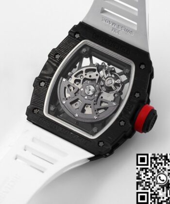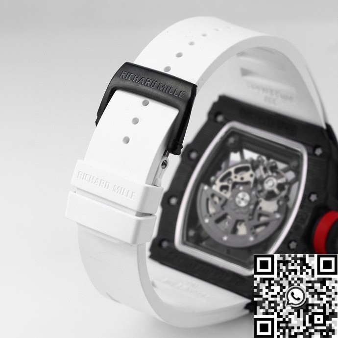 The Richard Mille RM35-02 White Strap Watch by BBR Factory is a sleek, modern timepiece that merges luxury craftsmanship with cutting-edge design. Featuring a durable carbon fiber case, a transparent skeletonized dial, and a bold white rubber strap, this watch is perfect for those who demand both performance and style. Whether you’re a fan of extreme sports or appreciate sophisticated watchmaking, this piece is designed to make a statement on any wrist.