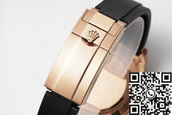 The 18k Everose gold Oyster bracelet offers both comfort and security, while the Oysterlock clasp ensures the watch stays in place, even during vigorous activities.