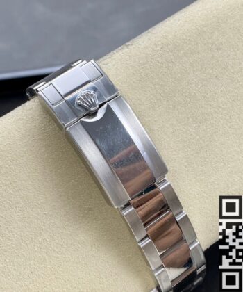 The 40mm stainless steel case is not only durable but also exudes a sophisticated and timeless look. Paired with the Oyster bracelet, the watch ensures both comfort and style, making it a versatile choice for a variety of occasions. The black dial enhances legibility, while the luminous hour markers and hands ensure the time remains clear and visible in low-light conditions.