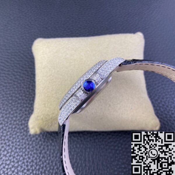 The 40mm case and bezel are meticulously set with high-grade diamonds, adding exceptional brilliance and luxury to the timepiece. Each stone is placed by skilled artisans to enhance the sparkle while preserving the iconic Submariner silhouette.
