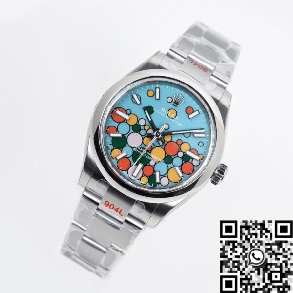 - Water Resistance: With a water resistance of up to 100 meters, this Rolex Oyster Perpetual is suitable for everyday use, including light swimming and showering. While it is not intended for diving, it can withstand typical water exposure and daily wear.
