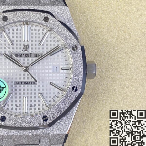 - Exact 1:1 Replica: A flawless recreation of the Audemars Piguet Royal Oak with the frosted finish, white dial, and signature design elements.